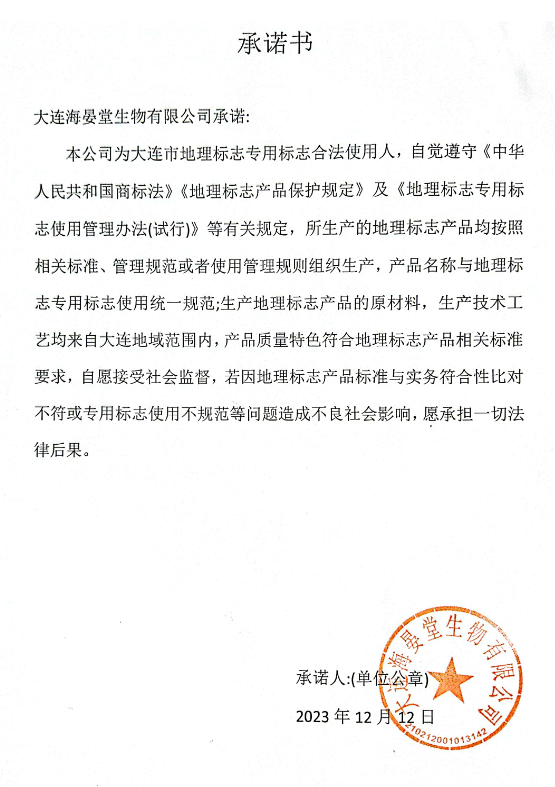 大連海晏堂生物有限公司地理標(biāo)志公示