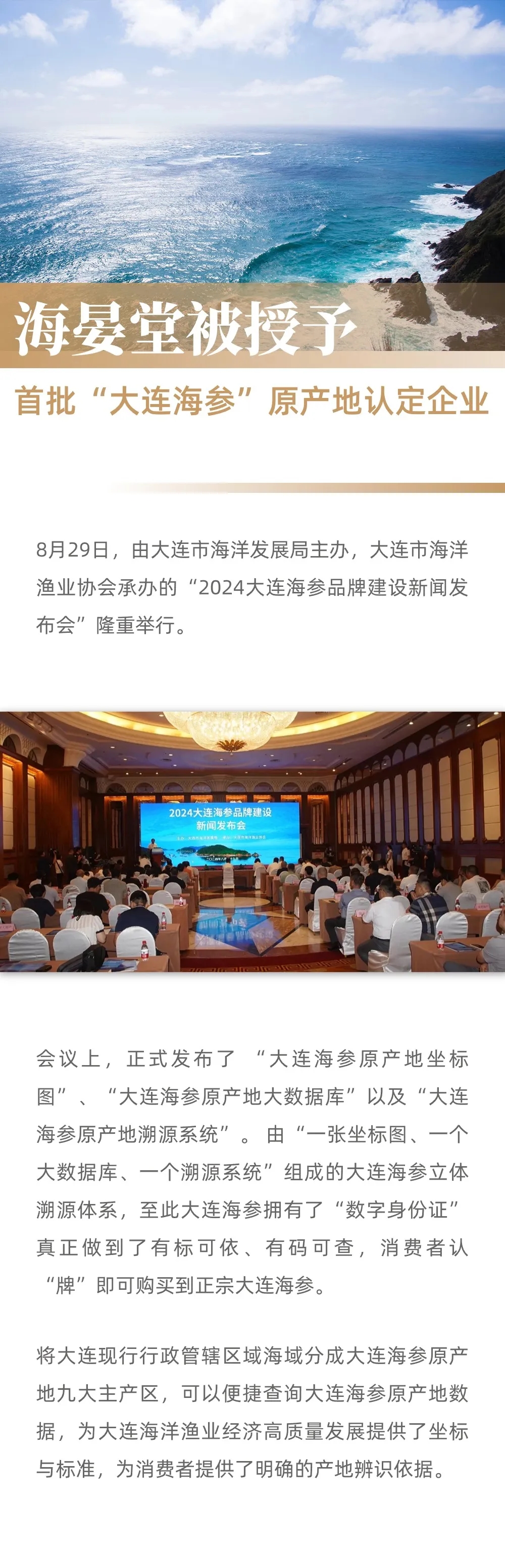 專注大連海參25年|海晏堂被授予首批“大連海參”原產(chǎn)地認(rèn)定企業(yè)