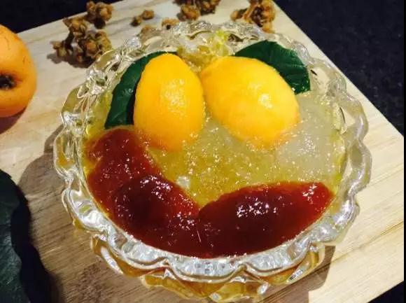 4、將鮮枇杷肉和冰糖加入燕窩中 ,稍微加熱即成。