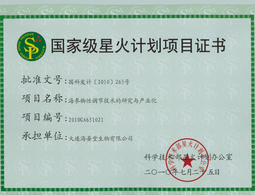 海晏堂海參物性調(diào)節(jié)技術(shù)被確立為國家級星火計劃項目。