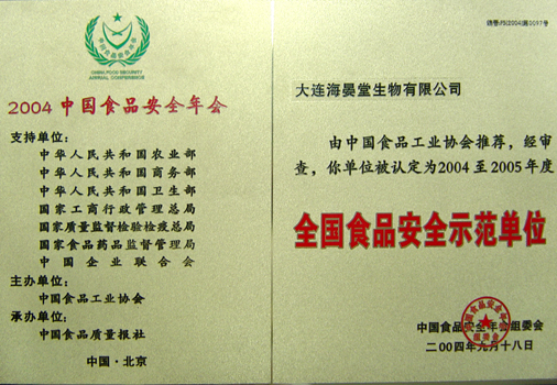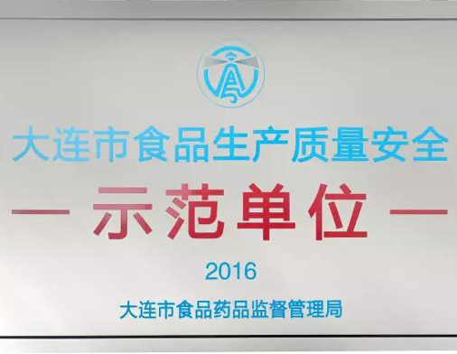 海晏堂被大連市食品藥品監(jiān)督管理局評為“大連市食品生產(chǎn)質(zhì)量安全示范單位”。