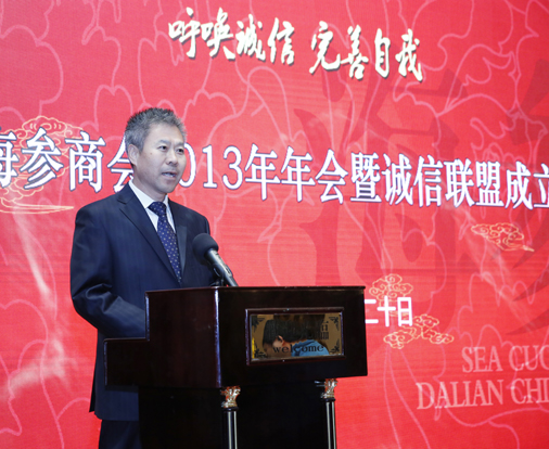 海晏堂參加以“呼喚誠信,完善自我”為主題的大連海參商會2013年年會暨誠信聯(lián)盟成立大會,董事長邵俊杰作為商會副會長在會上宣讀《大連海參商會誠信聯(lián)盟公約》,海晏堂公司作為誠信聯(lián)盟創(chuàng)始盟員在《公約》上簽字,并接受市領(lǐng)導(dǎo)頒發(fā)的“誠信金鼎”。