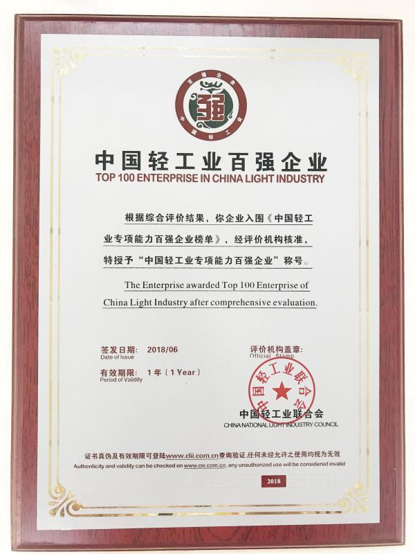 2018年6月,海晏堂被授予“中國輕工業(yè)百強(qiáng)企業(yè)”